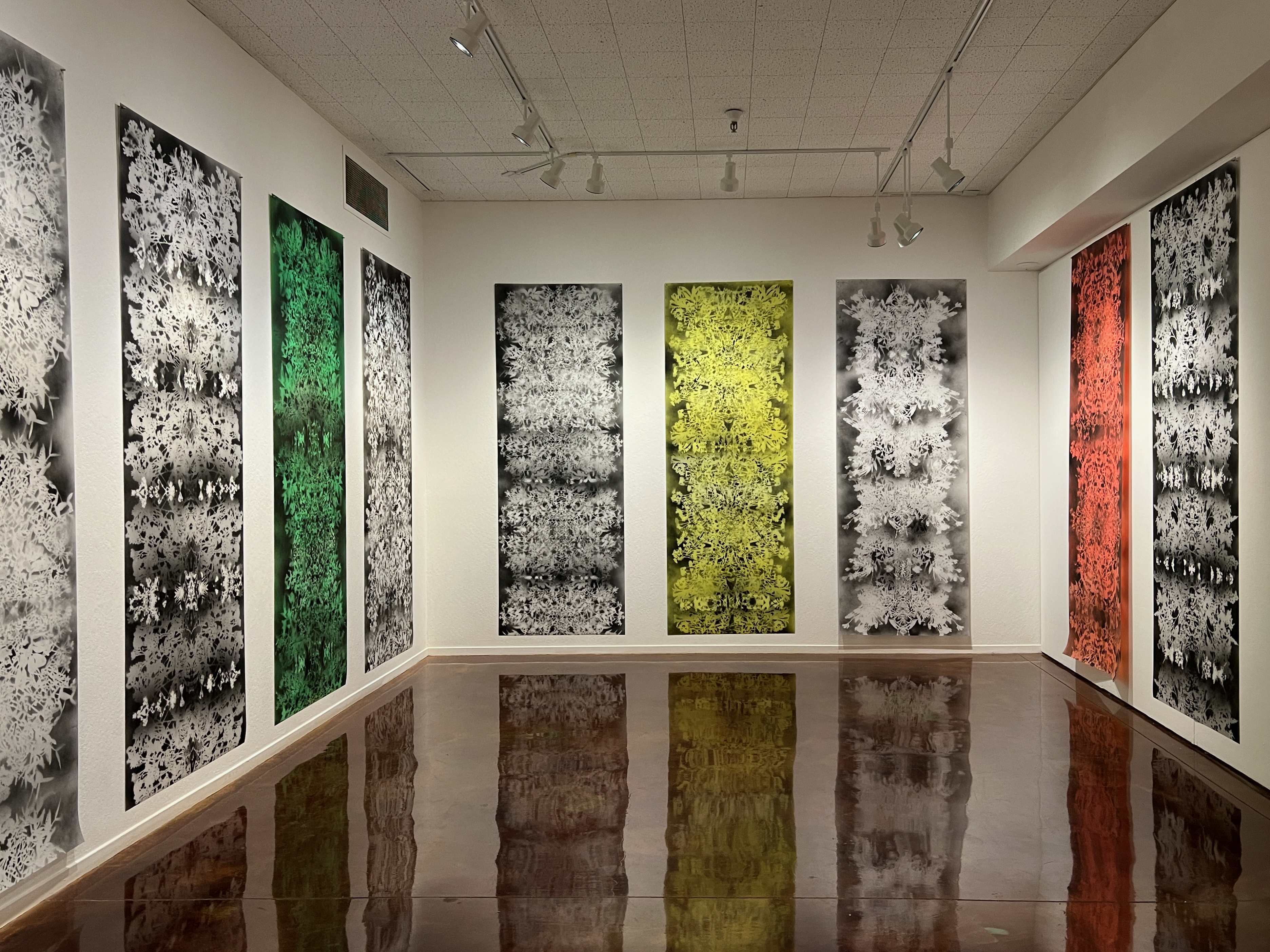 below: Ann Resnick, Something To Divine, series, detail, spray paint on double matte mylar
