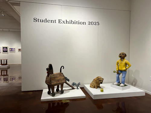 Student Exhibition 2026 is a wide-ranging survey of artwork produced by students in the Cabrillo College Art Studio and Art Photography Departments. It showcases an outstanding cross-section of student talent and creative imagination, demonstrating the dedication and hard work our students apply to learn and refine their ideas, skills and techniques. This exhibition includes artworks in a great variety of disciplines and media, including painting, drawing, printmaking, ceramics, sculpture, small-scale metals/jewelry, digital fabrication, graphic design, mixed media, woodworking, video, and traditional, alternative process and digital photography.