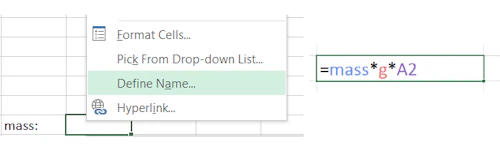 Haz clic derecho en una celda, selecciona definir nombre y luego edita si es necesario en el cuadro de diálogo.