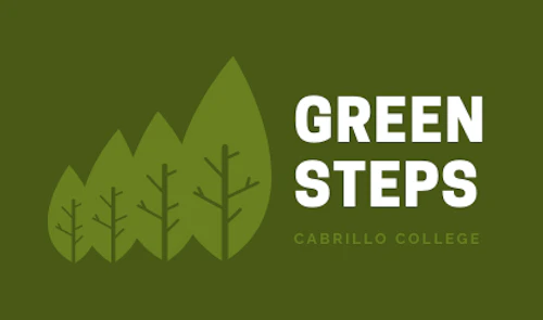 Cabrillo GreenSteps es nuestro nombre inaugural que representa un esfuerzo universitario que busca integrar esfuerzos ambientales, económicos y socialmente justos en todo lo que hacemos. Comenzó como un proyecto de la Tarea Force de Iniciativa Climática de Cabrillo College, con el apoyo del Consejo Estudiantil de Sostenibilidad. Desde nuestros primeros proyectos de sostenibilidad, el nombre GreenSteps permanece como el concepto central para nuestros esfuerzos de sostenibilidad. GreenSteps ahora está gestionado por el Comité de Planificación Sostenible y Climática y la Subcomisión de Cultura Sostenible del Senado Académico. El objetivo es proporcionar información, concienciación y un punto de conexión con el amplio rango de esfuerzos diversos que trabajan para hacer nuestro campus, currículo y nuestra comunidad un lugar sostenible para que todos puedan prosperar.